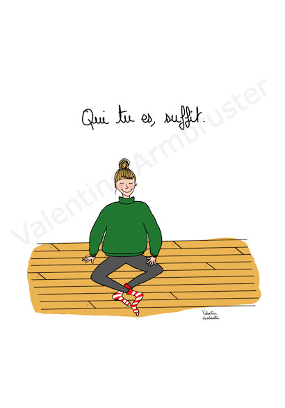 Qui tu es, suffit. Pas besoin de chercher à être quelqu'un d'autre. À votre avis, qui a besoin d'entendre ça ? Vous avez trouvé ? Offrez-le lui ;-) Format A4, 21x29,7cm © Valentine Armbruster